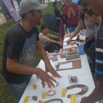 Trata-se de um movimento gestado entre os municípios da região, que costumamos nomear como “da linha do trem”: Canoas, Esteio, Novo Hamburgo, São Leopoldo, Sapucaia do Sul e Porto Alegre. São 43 km e 22 estações, única linha de trem na região metropolitana com uma população de 4,3 milhões. Saúde Mental na linha do trem busca mudar a relação da sociedade com a loucura na construção de relações sociais mais solidárias e mais inclusivas: usuários, entidades da sociedade civil, trabalhadores e gestores das políticas de assistência social, educação e cultura. Um evento pensado e gestado entre muitas mãos e corações. Realizamos a intervenção em 2022 e 2023 já em 2024 não foi possível pois fomos atingidos pela tragédia climática da enchente.